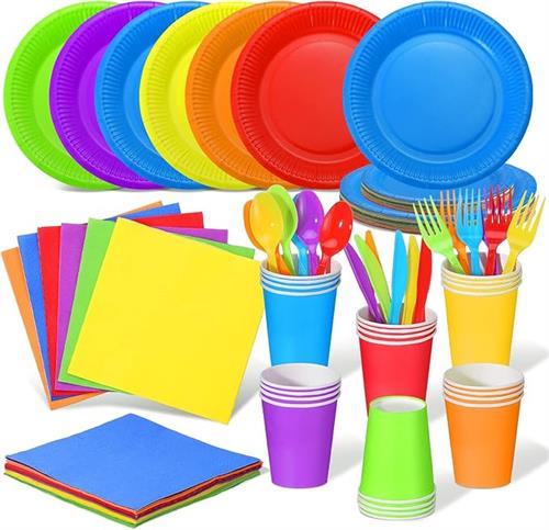 Plastic Disposable Rainbow Party Supplies Set