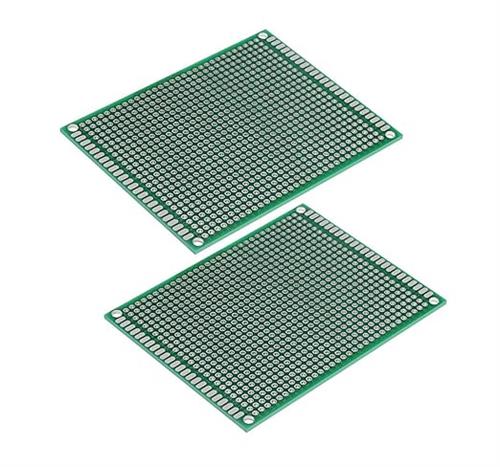 The size of printed circuit board : 7cm X 9cm(2.756" X 3.543"); The weight of one piece universal printed circuit board: 18.0g/0.635oz. The pcb board is double sided, with the plated holes are pre-tinned, the hole diameter of the prototype circuit board is about: 1 mm/0.039", The hole number of printed circuit universal breadboard. The thickness of the prototype board is about: 1.6mm/0.062"; with 4 mounting holes at each corners of the circuit board. The prototyping board material is durable glass fiber FR-4; It's high quality, sturdy, and very solid universal circuit board.