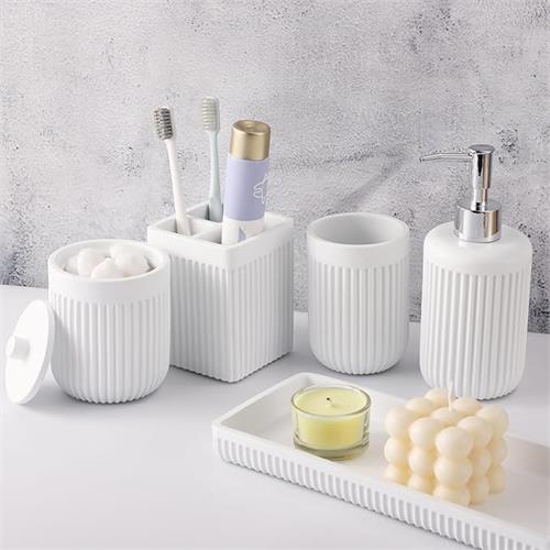 Resin White Bathroom Countertop Organizer Set