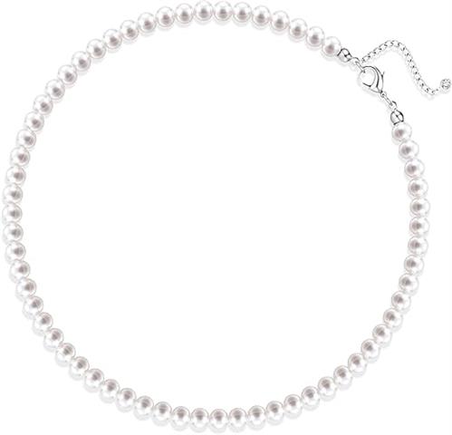This dainty white imitation pearl choker necklace features white imitation pearl choker To ensure longevity and a non-tarnish shine, the silver plated extender and lobster clasp of this imitation pearls necklace is crafted with an innovative, eco-friendly electrophoretic coating that forms a protective barrier against oxidation. Our dainty imitation pearl necklace is lead-free, nickel-free and hypoallergenic, no harm to sensitive skin, suitable for all-day wear. This imitation pearl necklaces for women comes with 1 exquisite gift box, a perfect gift for many occasions like Christmas Day, Birthday, Valentine's Day, Mother's Day, Graduation, Wedding, Anniversary, Engagement in life, just gift this imitation pearls choker necklace to your loved ones.